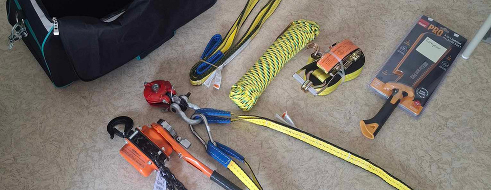 Équipement pour nos VTT / Motoneiges avec un sac d’outils pour les interventions sur le TNO (treuil manuel, cordage, poulies, sangles de levage / remorquage, etc.)